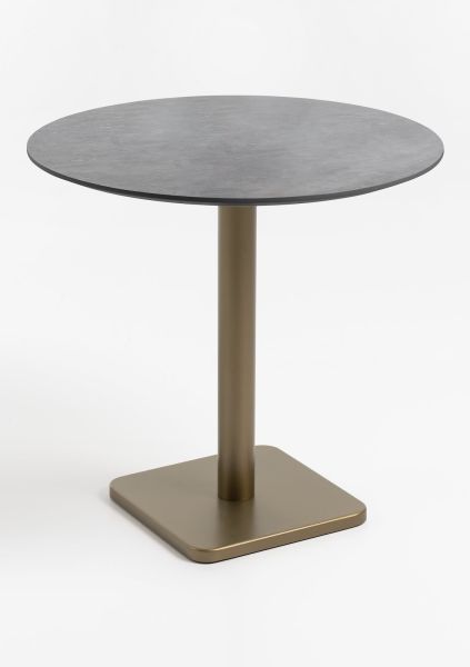 Klein (eet-)hoekje inrichten? COCOmaison heeft dé oplossing voor je! In onze Brest-serie vind je namelijk heel veel leuke bistro- en bartafeltjes. De tafels hebben allemaal een metalen poot, die verkrijgbaar is in goud of zwart en een blad van eikenhout, steen of marmer. Je kunt daarnaast telkens kiezen uit een ronde, vierkant of rechthoekige variant. Door al die verschillende uitvoeringen kun je uit maar liefst verschillende 72 tafeltjes kiezen! Superhandig én stijlvol dus! Dit is de ronde bistrotafel met een diameter van 80 cm, een goudkleurige poot en een blad van steen in kleur antraciet.