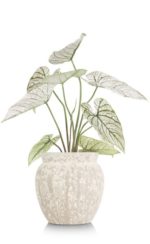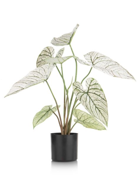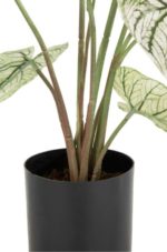 Wil jij het hele jaar door van een CALADIUM genieten, dan heeft COCOmaison de oplossing. Het vervelende van de CALADIUM is namelijk dat het een seizoensplant is. Hij sterft in de herfst af, de knol sterkt weer aan in de winter en met een beetje mazzel verschijnen in het voorjaar weer bladeren. Daar heb je met deze kunstplant echter geen last van! Met zijn ragfijne groenroze bladeren fleurt hij het hele jaar door jouw huis op! Met een hoogte van 60cm is het een flinke jongen die een bijpassende pot nodig heeft. Maar verder heb je er geen omkijken naar en alleen maar heel lang plezier van! Potgrootte: diameter 12,5 cm / hoogte 11,5 cm.