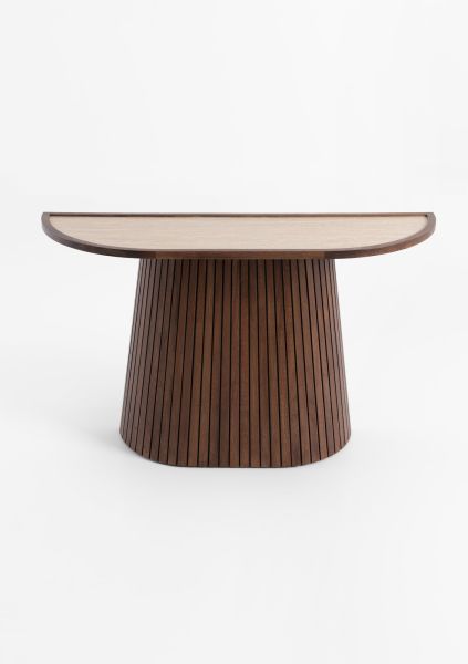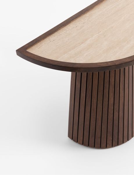 Ontdek de Cleo wandtafel van COCOmaison. Deze stijlvolle wandtafel is 77 cm hoog en heeft een prachtig travertin blad dat een luxe en natuurlijke uitstraling geeft. De bruine afwerking en de latjes op de pot zorgen voor een trendy en verfijnd design dat perfect past bij de laatste interieurtrends. De Cleo wandtafel is niet alleen een functioneel meubelstuk, maar ook een decoratief element dat je ruimte verrijkt. Plaats deze wandtafel in je hal, woonkamer of kantoor en combineer hem met de bijpassende salontafels van COCOmaison voor een harmonieus en stijlvol geheel.