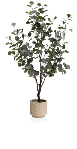 Er zijn helaas maar weinig echte bomen die in huis kunnen overleven. Wil je toch een boom in je interieur? Met de Eucalyptus tree van COCOmaison haal je al het moois van een echte eucalyptusboom naar binnen, maar dan zonder de nodige verzorging. De blaadjes van deze kunstboom hebben een frisse groen-blauw-grijzige kleur, waardoor hij een natuurgetrouwe uitstraling heeft. De boom wordt geleverd inclusief zwarte binnenpot. Deze Eucalyptus tree is 140 cm hoog en ca. 50 cm breed, maar er bestaat zelfs nog een grotere variant van 180 cm. Potgrootte: diameter 15 cm / hoogte 13,5 cm.