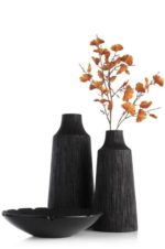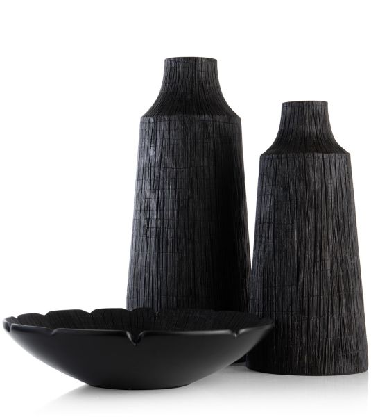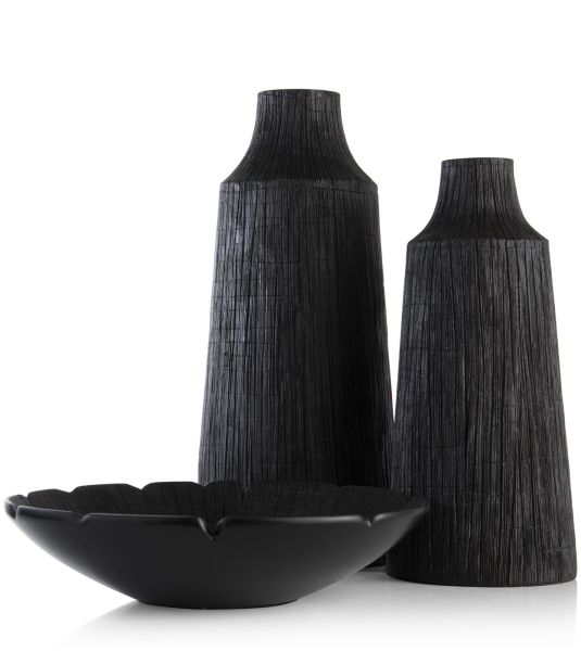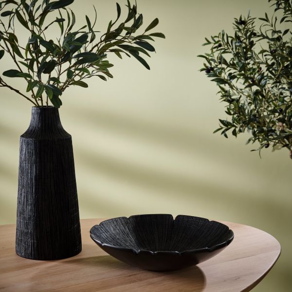 Ben jij fan de Wabi Sabi-stijl? Dan word je vast op slag verliefd op de FINN schaal van COCOmaison. De schaal is gemaakt van een lichte kunsthars, polyresin en heeft een houtskoolzwarte kleur. Hij heeft een doorsnede van 39 cm en een naturel houtprint aan de binnenzijde. Hij is net als veel van onze producten multifunctioneel: in zijn pure vorm is het een sierobject, maar hij doet het ook prima als fruitschaal. Wil je de schaal extra laten opvallen, combineer hem dan met een vaas of beide vazen uit dezelfde serie.