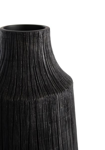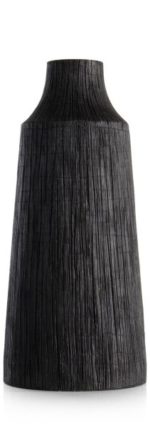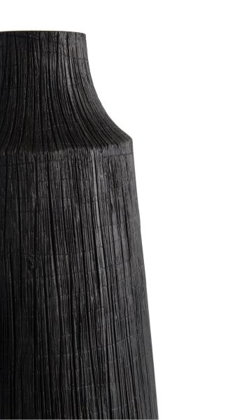 Ben jij fan de Wabi Sabi-stijl? Dan word je vast op slag verliefd op de FINN vaas van COCOmaison. De vaas is gemaakt van een lichte kunsthars, polyresin en heeft een houtskoolzwarte kleur. Hij is 50 cm hoog, heeft een pure vorm en een naturel houtprint aan de buitenkant. Misschien juist door de sobere vormgeving heeft deze vaas een sterke uitstraling, die nog krachtiger wordt als je hem combineert met zijn iets kleinere soortgenoot en/of de bijpassende FINN schaal. Wil je de vaas extra laten opvallen, zet er dan een enkele (kunst)tak in. COCOmaison heeft een uitgebreide collectie!
