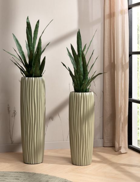 Ontdek de indrukwekkende COCOmaison Garda pot, een opvallende vaas die elke ruimte een stijlvolle en moderne uitstraling geeft. Met een hoogte van 97 cm en een diameter van 34 cm is deze pot een echte blikvanger. Deze Garda pot is gemaakt van duurzaam polyresin en afgelakt in een elegante groen/grijze kleur. Het opvallende reliëf voegt een extra dimensie toe aan het design, waardoor het een uniek decoratief object wordt. Deze pot wordt geleverd inclusief kunststof binnenpot. De Garda pot is ook verkrijgbaar in een maatje groter, zodat je kunt kiezen wat het beste bij jouw interieur past, of zet ze samen weg!