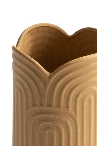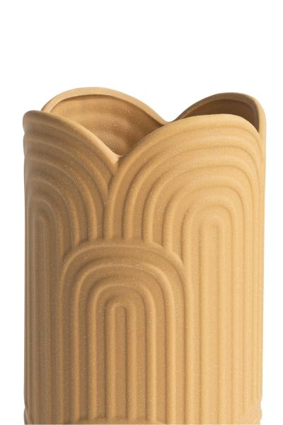 De Gia vaas van COCOmaison is een stijlvolle toevoeging aan je interieur met zijn moderne, maar tijdloze design. Deze keramieken vaas is 35 cm hoog en heeft een okergele kleur in een luxe, matte afwerking. Wat de Gia vaas bijzonder maakt is het subtiele lijnenspel op de bovenkant van de vaas en als reliëf over de vaas. De Gia vaas is perfect om je interieur een warme touch te geven!