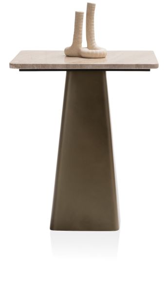 Serie Issy bestaat uit drie prachtige bijzettafels die je los kunt neerzetten of perfect met elkaar kunt combineren als set. Deze tafeltjes van COCOmaison stralen luxe en een klassieke elegantie uit dankzij hun goudkleurige metalen voet en het schitterende crèmekleurige travertijnen blad. Dit is de hoogste en smalste variant met een bladafmeting van 46 x 46 cm en een hoogte van 54 cm. Issy is vervaardigd uit 40% metaal en 60% marmer. Dit meubel is voorzien van een blad van natuursteen. Natuursteen is een natuurlijk materiaal, wat betekent dat elke tafel uniek is. Kleine variaties in kleur, structuur en patroon maken uw meubelstuk exclusief en authentiek.