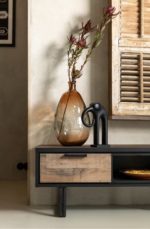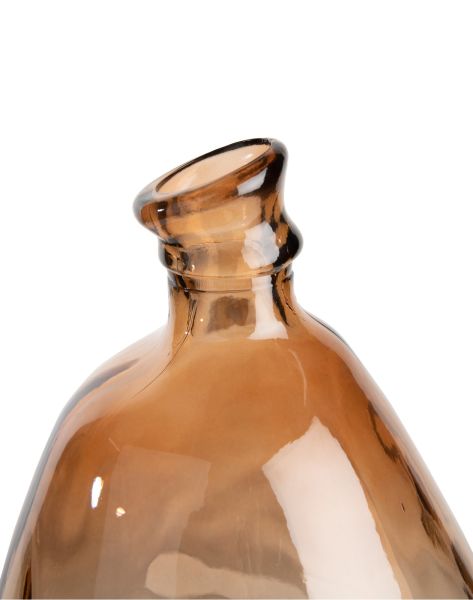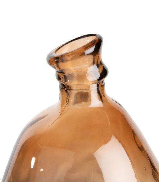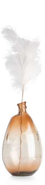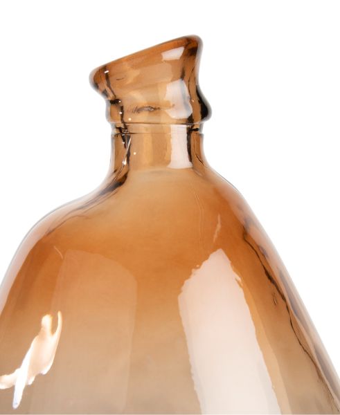 De grote JAVI vaas valt niet alleen op door zijn formaat, maar ook door zijn bijzondere model én door het prachtige kleurverloop. JAVI komt uit de collectie van COCOmaison en is verkrijgbaar in twee verschillende uitvoeringen, waarvan dit met een hoogte van 47 en doorsnede van 26 cm het grootste exemplaar is. Beide vormen zijn gemaakt van gerecycled glas en hebben een kleur die van volledig transparant vloeiend overloopt in diepbruin. Deze mooie kleurschakering valt des te meer op als je er ‘s avonds lamplicht op schijnt, waardoor de warme tinten nóg meer tot leven komen.