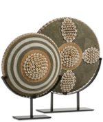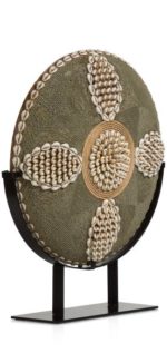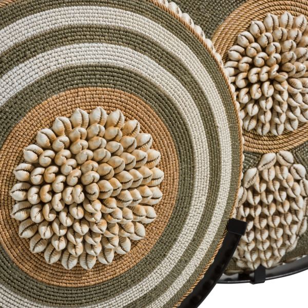 Object JENNIFER uit de COCOmaison collectie is een sfeervol rond beeld op een statief van zwart metaal. Het beeld doet denken aan een gevlochten mand met een bijzonder schelpen patroon. Dankzij de neutrale kleuren straalt dit object warmte uit. Stylingtip: Combineer JENNIFER met beeld LAURA.