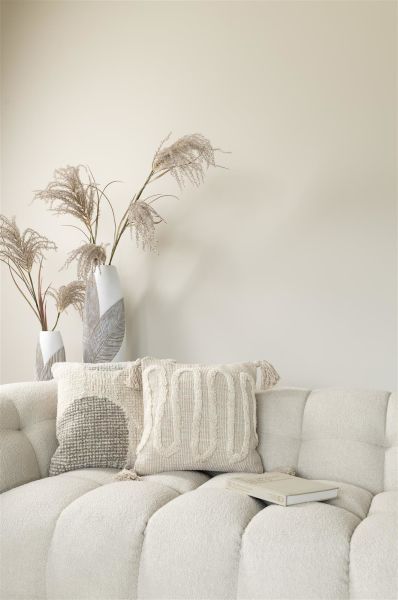 Grote vazen zijn helemaal hot en zelfs als je er al een of meerdere hebt, is vaas JOLIE een welkome aanvulling. Deze vaas uit de collectie van COCOmaison is gemaakt van polyresin, een licht en waterbestendig materiaal. De witte kleur en het ingekerfde lichtbruine bladpatroon zijn neutraal en geven de vas een prachtige naturellook. Dit eenvoudige design sluit naadloos aan bij de Japandi woonstijl die momenteel erg populair is en dat vast nog wel een tijdje blijft.