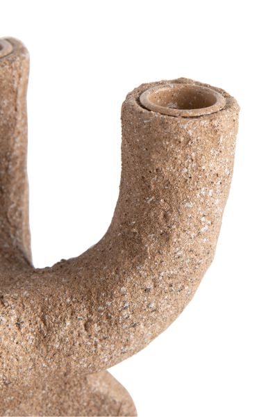 De kandelaar JUNE van COCOmaison lijkt een archeologische vondst van een oude beschaving. Met zijn pure, ambachtelijke design past hij echter helemaal in de laatste interieurtrends. Hij heeft een ruwe steenlook en een lichtbeige kleur. De kandelaar is 27 cm hoog en is geschikt voor 3 dinerkaarsen. Wil je de kandelaar extra laten shinen, kies dan ook kaarsen in een bijzondere vorm of kleur. JUNE is ook verkrijgbaar in een iets hogere uitvoering waarin 2 kaarsen passen.
