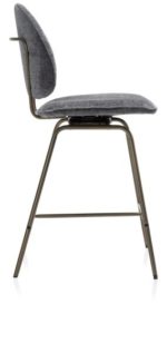 Bij COCOmaison zit je helemaal goed. Zeker met de Kjel barstoel! Deze hippe, moderne stoel valt op door het goudkleurige frame en is bekleed met een zachte, trendy stof in het antraciet. De Kjel barstoel is draaibaar, extra handig dus! De barstoel is ook verkrijgbaar in crème, okergeel of mint. Deze antracietkleurige barstoel heeft een zithoogte van 66 cm en staat bijvoorbeeld erg tof in een setje van twee aan een eetbar in de keuken.