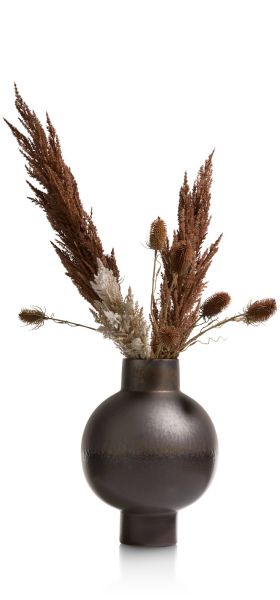 Ben je op zoek naar een mooie stoere vaas in een donkere tint? Deze keramieken vaas LARA uit de COCOmaison collectie heeft een bruin/grijze kleur met een metallic finish. Mooi met een kunsttak erin en ook leuk in combinatie met pot LARA in dezelfde stijl.