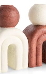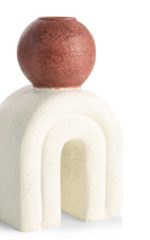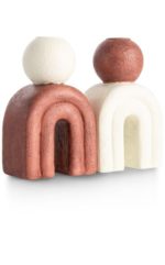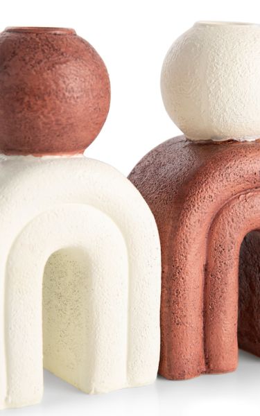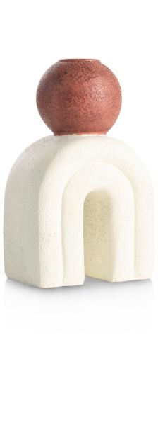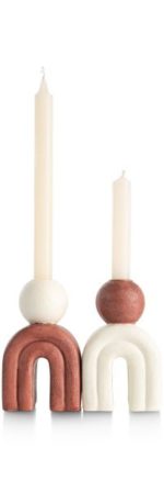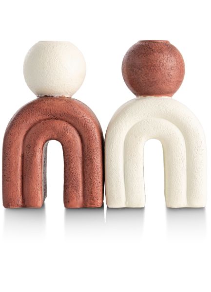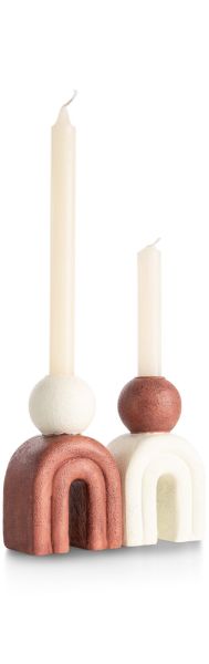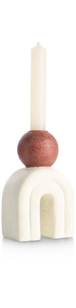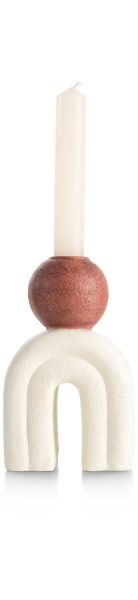 De polyresin kandelaar LOT van COCOmaison is er in 2 uitvoeringen, dit crème met roodbruin model en een roodbruin met crème exemplaar. Beide zijn 16 cm hoog en hebben een modern strak design, maar met een beetje fantasie zie je er misschien een poppetje in. Hij is geschikt voor een lange smalle kaars en komt helemaal mooi tot zijn recht als je hem combineert met zijn broertje.