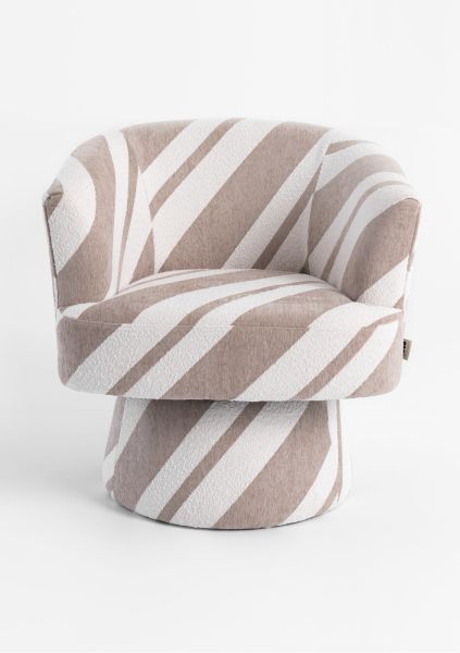 Voeg een vleugje eigentijdse stijl toe aan je interieur met de Nora fauteuil van COCOmaison. Deze fauteuil, met zijn hippe design, is bekleed met een luxe beige en taupekleurige stof die een warme en uitnodigende uitstraling geeft. De gestoffeerde cone poot onder de stoel zorgt niet alleen voor een stevige basis, maar voegt ook een uniek design element toe. Bovendien is de Nora fauteuil draaibaar, wat zorgt voor extra comfort en flexibiliteit. De afmetingen van deze fauteuil zijn: diepte 70 cm, hoogte 74 cm en breedte 72 cm. Deze fauteuil past perfect in iedere ruimte. Met de Nora fauteuil van COCOmaison haal je niet alleen een functioneel meubelstuk in huis, maar ook een blikvanger die je interieur naar een hoger niveau tilt.
