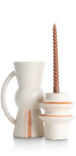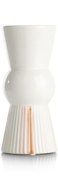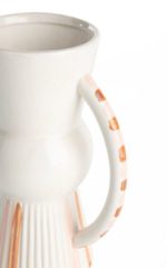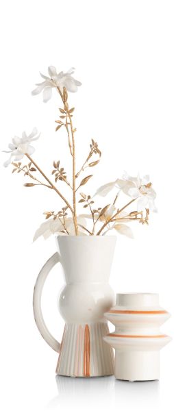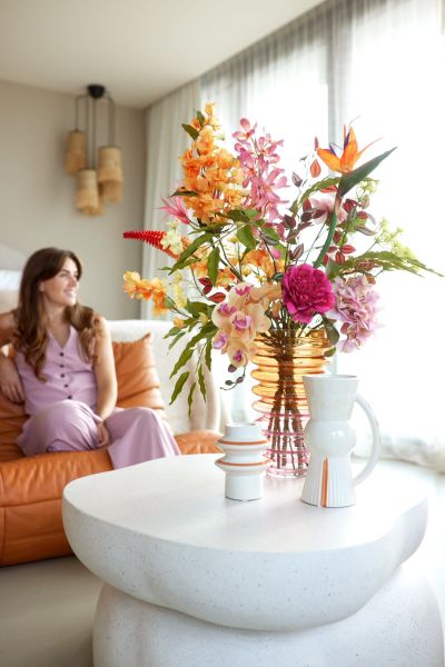 Oranje is terug in het interieur, maar veel subtieler dan in de jaren ’70. De oogverblindende compleet oranje muren en meubels hebben plaatsgemaakt voor zachte kleuraccenten. De NORA serie van COCOmaison is hiervan een goed voorbeeld. De vaas en kandelaar vormen een leuke set, maar kun je natuurlijk ook apart van elkaar ergens neerzetten. Deze vaas heeft een hoogte van 26 cm, een geplooide voet en en sierlijk handvat. Zet er een paar takken of een mooie boeket in en je huis oogt direct zonnig en zomers.