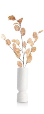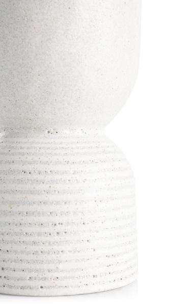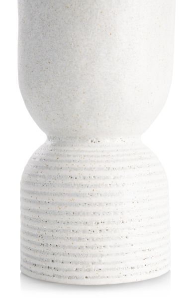De leuke NOVA vaas van COCOmaison is 32 cm hoog. Hij is uitgevoerd in keramiek met een betonlook. De vaas heeft een egaal wit design en alleen wat subtiele horizontale lijntjes op de voet. Door de eenvoud van het ontwerp komen de bloemen die je erin zet nog beter tot hun recht. Zonder bloemen is de vaas overigens ook prachtig om te zien en laat hij zich goed combineren met andere modellen in vergelijkbaar materiaal en/of vergelijkbare kleuren. Bijvoorbeeld met zijn kleinere broertje, 19 cm groot en lichtoranje van kleur.