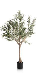 Soms heb je een verloren hoek in huis, die je lastig gevuld krijgt. Te klein voor een kast of stoel en te donker voor een levende plant. Denk dan eens aan een mooie grote kunstplant, zoals deze OLIVE TREE van COCOmaison. De plant is 150 cm hoog en draagt zwarte olijven. Een echte sfeermaker die je huis direct in mediterrane sfeer brengt. Hij is ook nog in een maatje groter verkrijgbaar, dan is hij 180 cm groot. Potgrootte: diameter 17 cm / hoogte 14,5 cm.