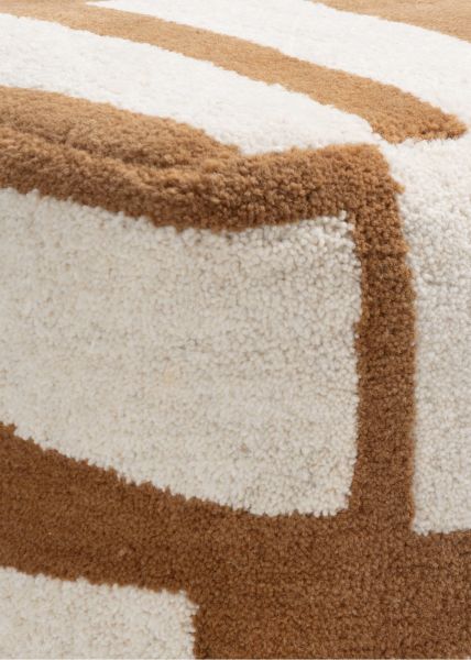 Deze charmante poef Olivia van COCOmaison heeft een opvallend geometrisch patroon. Samen met de bruine en ivoorwitte kleuren zorgt dit voor een speelse retrolook. Net als het bijbehorende vloerkleed en kussen is de hoes van de poef gemaakt van 90% wol en 10% katoen. De kubusvormige poef heeft een afmeting van 40 x 40 x 40 cm en is ideaal als voetensteun of extra zitplaats.