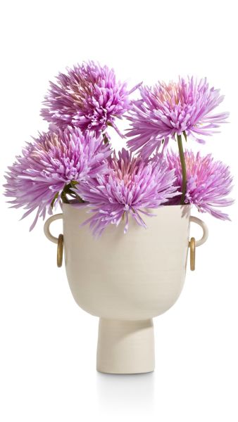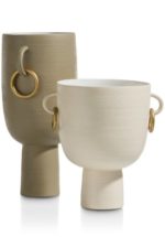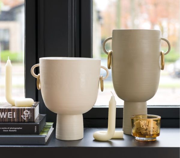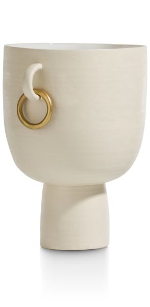 Vaas PRESLEY uit de COCOmaison collectie is een vaas gemaakt van keramiek. PRESLEY staat op een hoge voet en heeft als bijzonder detail twee gouden ‘oorbellen’ aan de zijkanten. Ook verkrijgbaar in een maatje groter in de kleur beige.