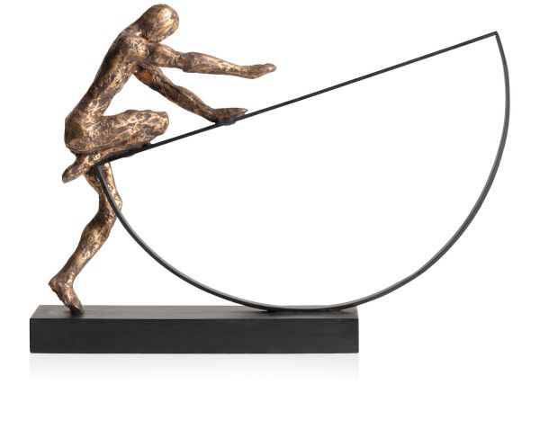 Met dit abstracte beeld Pushing van COCOmaison maak je je styling helemaal compleet. Het met de hand geboetseerde beeld laat een man zien die ene halve cirkel vooruitduwt. Het heeft een zwarte kleur met een mooie vintage gouden finish en is de ideale toevoeging voor bijvoorbeeld je vensterbank of voor een open vak in een kast. Het beeld is gemaakt van een combinatie van metaal en polyresin, is 40 cm breed en 33 cm hoog. Combineer beeld Pushing met het bijpassende beeld Climbing.