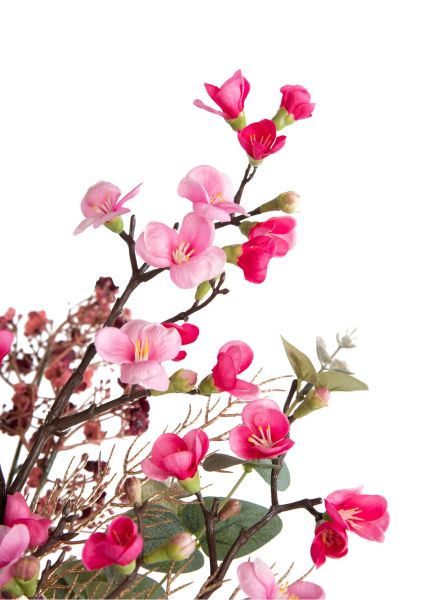 Word jij ook zo vrolijk van bloesem in het voorjaar? Lange takken met knoppen die op uitbarsten staan kondigen luid de zomer aan. Deze QUNINCE SPRAY, oftwel kweepeerbloesemtak heeft dieproze knoppen en lichtroze bloemen, en kun je samen met andere kunstbloemen uit het COCOmaison assortiment prachtig combineren tot een kleurrijk voorjaarsboeket. Een enkele bloesemtak in een grote vaas past overigens ook helemaal in de Japandi stijl die nu trendy is.