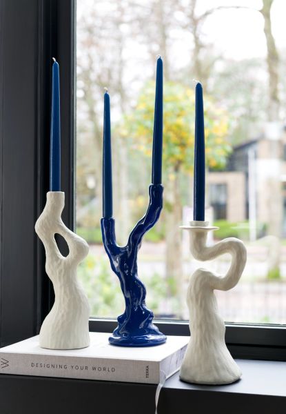 Deze fel blauwe kandelaar REBECCA in de vorm van een twijg is gemaakt van polyresin. REBECCA is 36 cm hoog en laat zich uber hip combineren met vaas SINAAS uit de COCOmaison collectie.