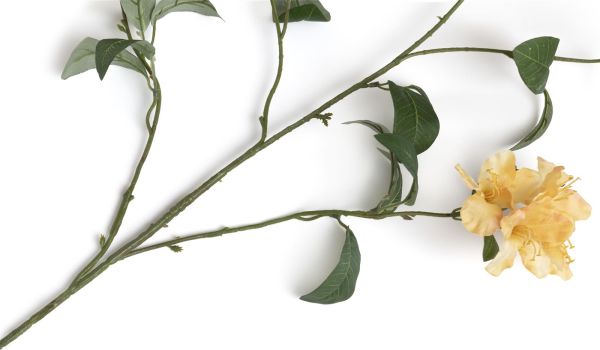 De Rhododendronstruik staan bekend om haar uitbundige en kleurrijke bloemen. Deze Rhododendron spray springt er dan ook helemaal uit met haar prachtige gele kleur. De tak bestaat uit meerdere bloemen en is in totaal zo’n 118 cm lang. Combineer De Rhododendron spray met wat andere bloemen uit de collectie van kunstbloemen en -planten van COCOmaison om een mooie zomerse bos samen te stellen die nooit uitgebloeid is!