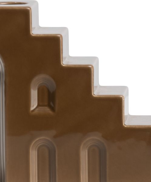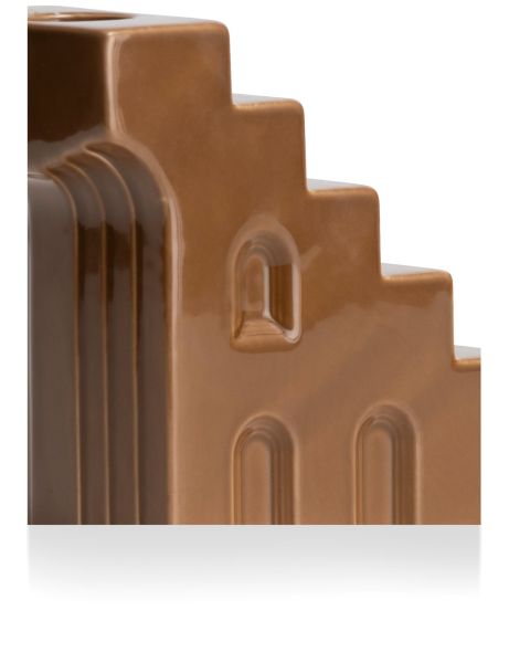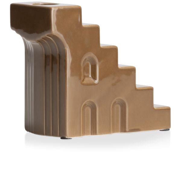 Kandelaar Skira heeft de vorm van een trap met kenmerkende bogen, zoals we het van de klassieke Romeinse architectuur kennen. Die klassieke uitstraling komt ook terug in de chique bruine kleur van de kandelaar, die is gemaakt van 90% en 10% glazuur. Met deze betoverende kandelaar van 12 cm hoog til jij je decoratie letterlijk naar een hoger niveau. Ontdek ook de andere accessoires van COCOmaison met een klassieke knipoog en combineer ze voor een mooi, elegant geheel.