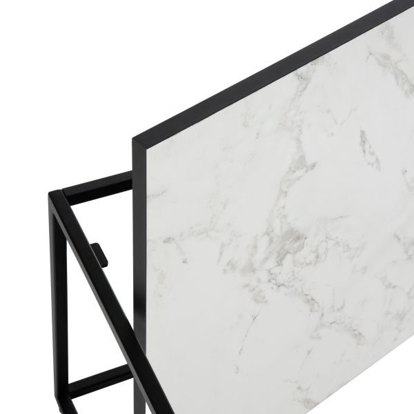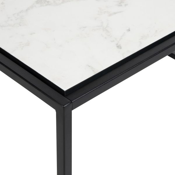 Een ideaal bijzettafeltje; dat is deze bijzettafel STAND UP uit de collectie van COCOmaison. Het marmer HPL blad geeft het tafeltje een chique uitstraling. Het blad is omkeerbaar; je kiest zelf of je de witte of de zwarte kant boven legt. Zie je het op een dag liever anders? Dan draai je de top gewoon om. Het frame van dit tafeltje is zwart en is ook verkrijgbaar in goudkleur. Je zet dit bijzettafeltje eenvoudig zelf in elkaar. Deze tafel heeft een afmeting van 60 x 60 cm en hij is 35 cm hoog. Laat je verrassen door de andere bijzettafels en pilaren uit de STAND UP serie en combineer ze met elkaar voor een stijlvol geheel.