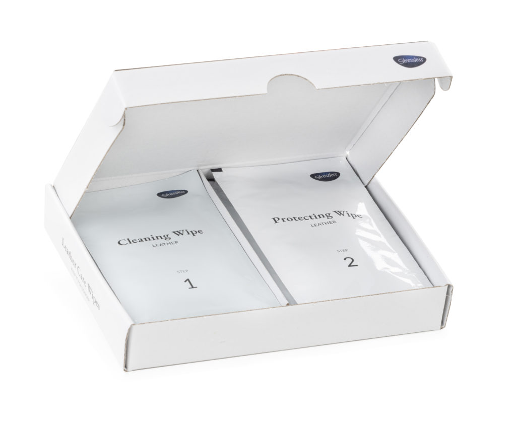 Als u uw meubels verzorgt, zorgt het meubilair ook goed voor u. De Stressless onderhoudset voor leer (medium, large) bevat een leerreiniger en een beschermende crème. De Stressless Leather Care Wipes bevatten reinigingsdoekjes en beschermende doekjes. Voor goede verzorging en betere bestendigheid van leer tegen vlekken, moet de beschermende crème op alle leeroppervlakken worden aangebracht van uw nieuwe comfortfauteuil. Naast het regelmatig verwijderen van vlekken adviseren wij dat het leer minstens om de zes maanden wordt gereinigd met de Stressless Leather Cleaner. Breng de beschermende crème na elke reiniging opnieuw aan.