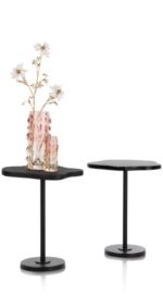 Laat je interieur stralen met de unieke Tina bijzettafel van COCOmaison! Dit tafeltje heeft een blad in een organische vorm, een diameter van 40 cm en een hoogte van 50 cm. Het metalen frame met zwarte finish geeft een eigentijdse touch, terwijl het houtnerf-blad in het zwart een natuurlijk element toevoegt. Tina is niet alleen functioneel, maar ook een speelse aanvulling die perfect te combineren is met andere bijzettafels.