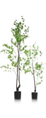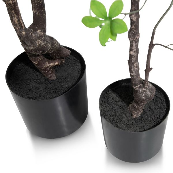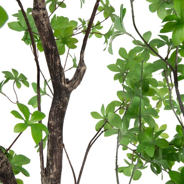 Ben je op zoek naar een mooie plant die het hele jaar door groen blijft zonder hem water te hoeven geven of te verzorgen? Maak kennis met deze prachtige kunstplant TROPAEOLUM met kleine vertakte groene blaadjes en bruine stam. Deze plant in Japandi stijl uit de collectie van COCOmaison is maar liefst 210 cm hoog en verkrijgbaar inclusief de zwarte plastic pot. Naar wens shop je hem ook in een maatje kleiner. Potgrootte: diameter 19 cm / hoogte 17 cm.