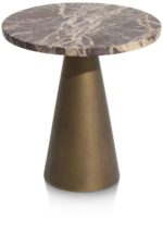 Bijzettafel Zita is gemaakt van 70% marmer (blad) en 30% aluminium (voet) en past daarmee perfect in de actuele marmertrend. Deze tafel is verkrijgbaar met twee verschillende bladen, waarvan deze variant is voorzien van een beige travertijn blad De combinatie met de goudkleurige poot zorgt voor een unieke en luxe uitstraling. Het blad heeft een doorsnee van 41cm en de bijzettafel is 43 cm hoog. Combineer Zita met andere bijzettafels uit de collectie van COCOmaison en zet er bijvoorbeeld een mooie vaas met bloemen op voor extra elegantie. Dit meubel is voorzien van een blad van natuursteen. Natuursteen is een natuurlijk materiaal, wat betekent dat elke tafel uniek is. Kleine variaties in kleur, structuur en patroon maken uw meubelstuk exclusief en authentiek.