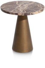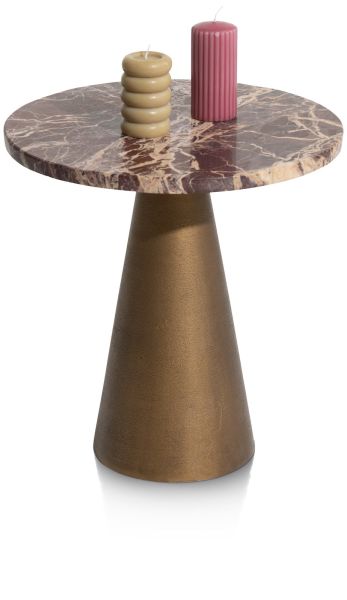 Marmer is nog steeds een grote interieurtrend en het zorgt voor een chique en elegante sfeer in je interieur. Bijzettafel Zita is gemaakt van 70% marmer (blad) en 30% aluminium (voet) en past dus perfect in deze trend. De combinatie van het rode marmer en de goudkleurige poot zorgt voor een hele warme sfeer. Leuk in combinatie met bijzettafel Rick of een andere bijzettafel uit de COCOmaison collectie. Het blad heeft een doorsnee van 41cm en Zita is 43 cm hoog. Tip: Zita is ook verkrijgbaar met een ander blad! Dit meubel is voorzien van een blad van natuursteen. Natuursteen is een natuurlijk materiaal, wat betekent dat elke tafel uniek is. Kleine variaties in kleur, structuur en patroon maken uw meubelstuk exclusief en authentiek.