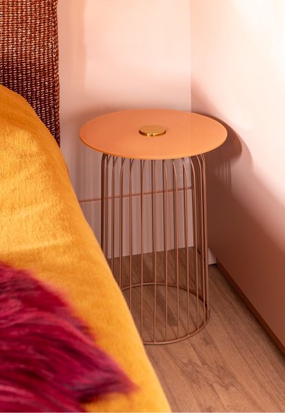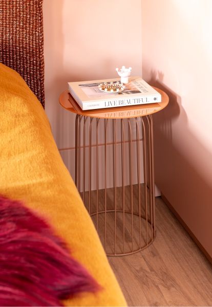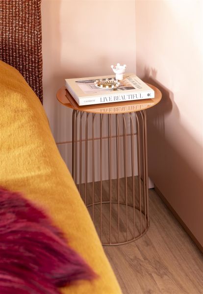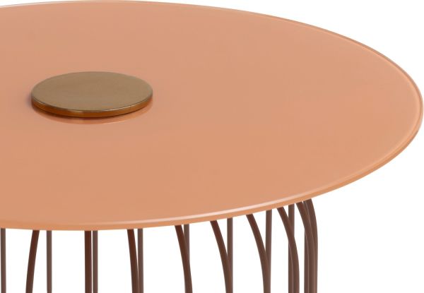 Bijzettafel Zora springt eruit door de vrolijke oranje kleur, het stijlvolle gouden accent op het tafelblad en het hippe design. Deze tafel is gemaakt van 60% metaal (frame) en 40% glas (blad). Met een diameter van 40 cm en een hoogte van 52 cm is Zora ideaal als bijzettafel in de woonkamer of nachtkastje in de slaapkamer én je kunt Zora perfect combineren met andere bijzettafels en poefs van COCOmaison om je eigen set samen te stellen.