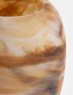 Deze glazen Jasper vaas is de middelste uit een serie van drie COCOmaison vazen van verschillende hoogte en allemaal net even anders van kleur en tekening. Hij heeft een afmeting van 21x21x23cm (bxdxh) en een marmerachtige tekening in oranjebruine tinten. Het enigezins transparante glas en de sierlijke vorm geven de vaas een elegante uitstraling die past in zowel een meer klassieke als moderne inrichting. Zelfs zonder een mooi boeket is dit een tijdloos woonaccessoire, dat helemaal aansluit op de natuurtrend in styling.