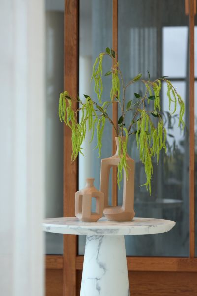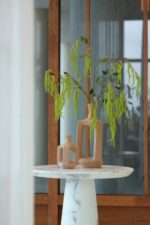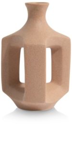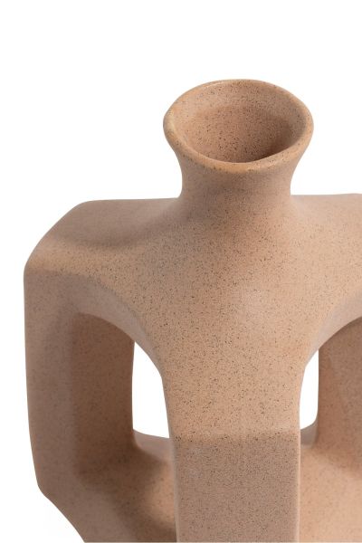 De Jules vaas van COCOmaison is een unieke vaas die je interieur een verfijnde uitstraling geeft. Deze speciale keramieken vaas heeft een driehoekige vorm met openingen, waardoor het een decoratief object is, ook zonder (kunst)bloem! Door de afwerking met beige zandstructuur valt dit item zeker op. De Jules vaas is 21 cm hoog en ook verkrijgbaar in een grotere variant.