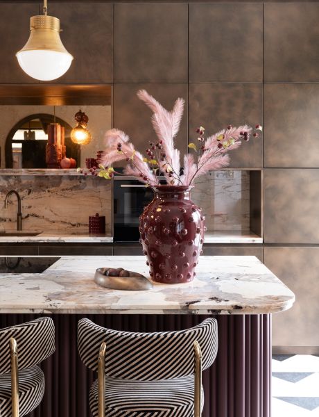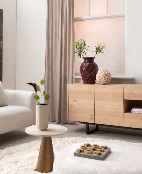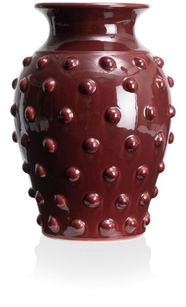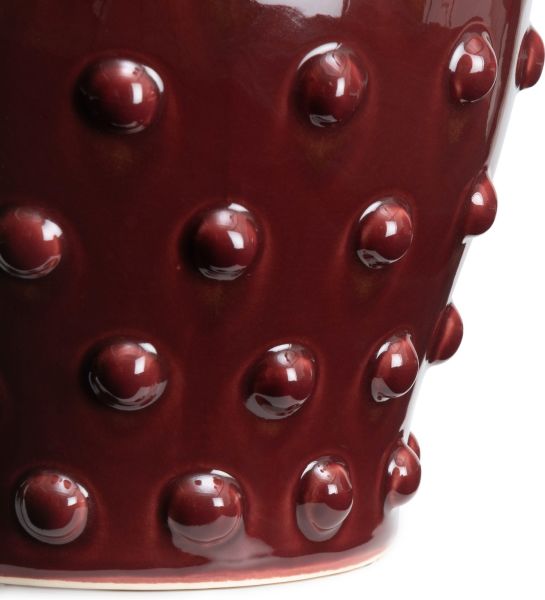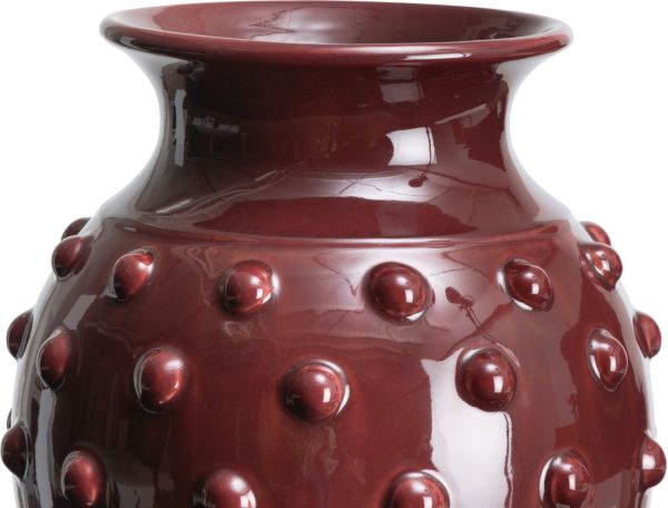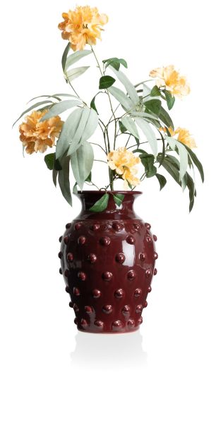 Deze vaas heeft geen bos bloemen nodig om eruit te springen! Vaas Kathy heeft een klassieke vorm en is geïnspireerd op de klassieke oudheid, maar dan net wat speelser uitgevoerd met decoratieve bolletjes op de buitenkant. De vaas van COCOmaison is gemaakt van 100% keramiek en voorzien van een mooie glazuurlaag in een diepe bordeauxrode kleur. Door de vorm en kleur heeft deze vaas echt een luxe uitstraling. Kathy is 44 cm hoog en staat leuk met een paar takken erin, maar staat ook zonder prachtig in je interieur.