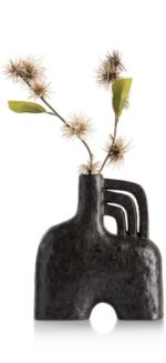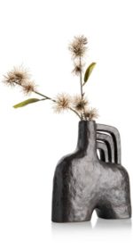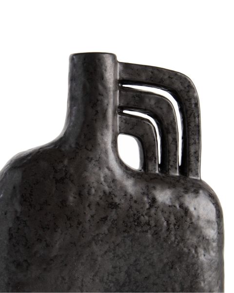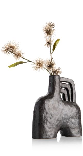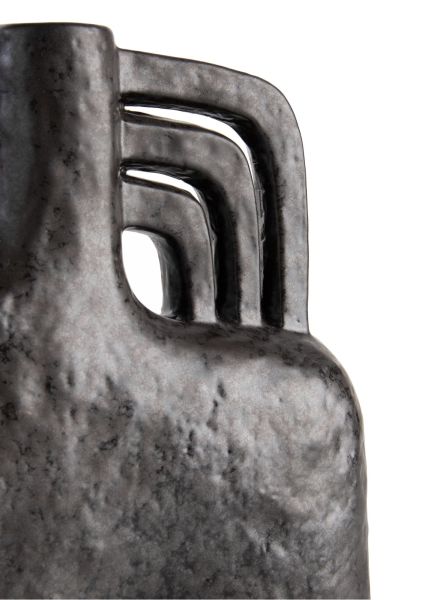Vazen heb je nooit genoeg toch? Hooguit kastruimte om ze in te bewaren. Nu is dat met de vaas LINA geen enkel probleem, want dit leuke zwarte vaasje van COCOmaison is toch te leuk om op te bergen. Het is van ruw keramiek en heeft een grappig driedubbel handvat. Het heeft een hoogte van 21 cm en een smalle opening. Je kunt er dus een paar bloemen of een kleine tak in steken, maar ook zonder vulling is het een sieraad in de kamer.