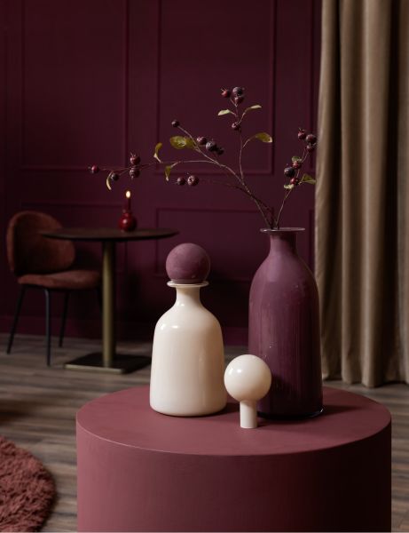 We noemen het bij COCOmaison een vaas, maar eigenlijk is de Mies veel meer dan dat. De pure vorm van deze okergele glazen vaas, 39cm hoog, wordt letterlijk afgetopt met een prachtige groene stop. Deze stop kun je natuurlijk gewoon op de vaas plaatsen, zodat de Mies als een sierlijke karaf oogt. Haal je de glazen stop eraf, dan kun je enkele sierlijke bloemen of takken in de vaas zetten. Maar hoe je de Mies ook noemt of gebruikt, het is een prachtig woonaccessoire waar je niet snel op uitgekeken raakt. Wil je vaas Mies extra laten opvallen, haal hem dan samen met zijn zusje in huis: de kleuren zijn precies andersom en de andere vaas is iets hoger en smaller. De Marthe vaas heeft hetzelfde model in de kleurencombinatie wit en paars.