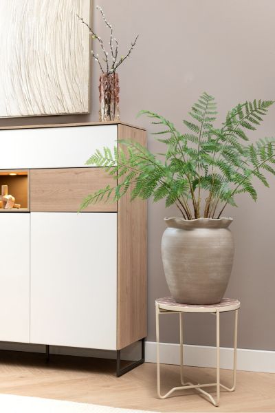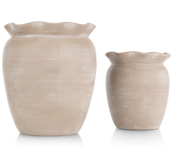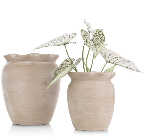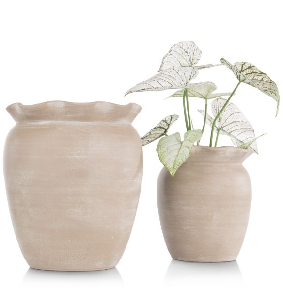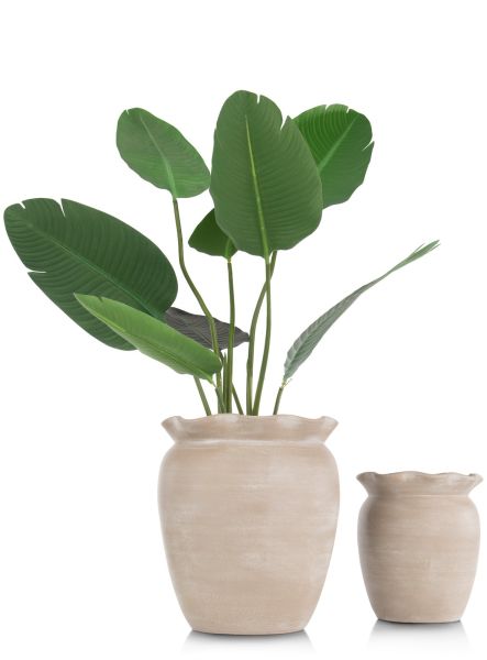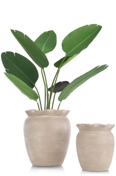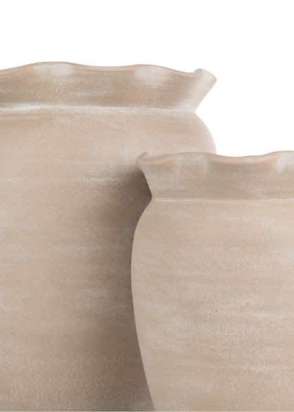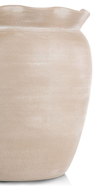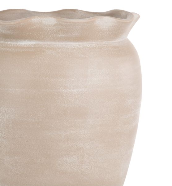 De oorsprong van de naam WAVE laat zich makkelijk raden: deze stijlvolle reeks potten en schalen kenmerkt zich door een verfijnde golfende rand. WAVE van COCOmaison wordt geproduceerd in Portugal, van 100% aardewerk. Elk object uit deze serie is met de hand gemaakt en er zijn dus geen twee stuks hetzelfde! De kleur is beige, maar ook in de kleurnuance is iedere pot uniek. De pot is verkrijgbaar in twee maten, waarvan dit de grootste is. Deze pot heeft een hoogte van 40 cm en een doorsnede van 26cm.