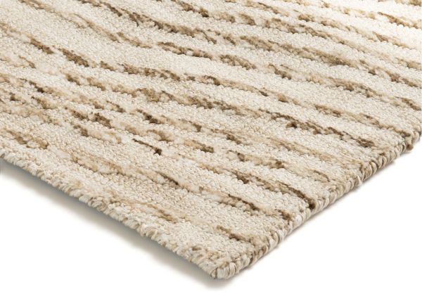 Er zijn meerdere manieren om de vaak rechthoekige vorm van een kamer een beetje te doorbreken. Een kleed neerleggen in een organische vorm is er daar een van. Een andere manier is een karpet te kiezen met een vloeiend motief, zoals het lijnenspel op dit ADA karpet. ADA is leverbaar in twee formaten: 190x290cm en een iets kleiner formaat van 160x230cm. Beide kleden zijn beige, met een ingeweven patroon van golvende lijnen in een iets donkerder kleur. Subtiel, maar toch genoeg om wat zachtheid toe te voegen aan een ‘hoekige’ inrichting. De ADA karpetten zijn gemaakt van 100% polyester, dus ondanks de lichte kleur goed schoon te houden.