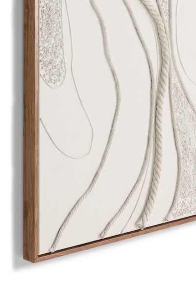 Het Rope schilderij van COCOmaison is een stijlvolle eyecatcher voor elk interieur. Dit grote kunstwerk van 100 x 150 cm heeft een crèmekleurige basis en is uniek door het opvallende 3D-touweffect dat het doek tot leven brengt. De subtiele lijnen van het touw creëren een speels reliëf, waardoor het schilderij diepte krijgt. Perfect voor een moderne of minimalistische ruimte waar je een bijzondere textuur aan wilt toevoegen.