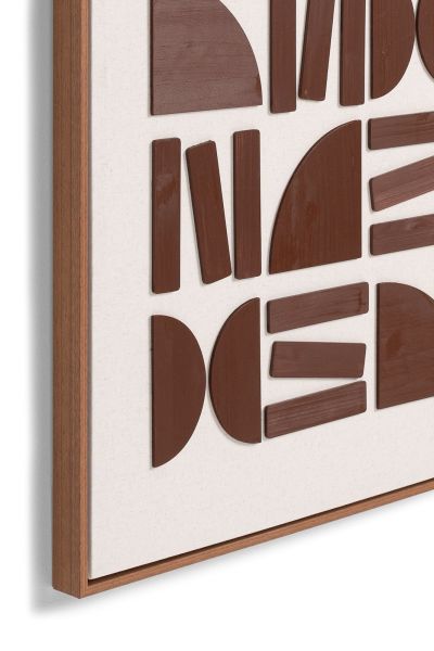 Het Rune schilderij van COCOmaison is een unieke toevoeging aan je interieur. Dit 80 x 120 cm kunstwerk combineert een crème basis met een stijlvol bruin patroon, waardoor het perfect past in zowel moderne als natuurlijke interieurs. Het bijzondere aan dit schilderij is het 3D-effect, gecreëerd door de houten organische objecten die speels op het doek zijn bevestigd. Hierdoor krijgt het kunstwerk extra diepte. Het Rune schilderij kan zowel horizontaal als verticaal worden opgehangen, wat je flexibiliteit geeft bij het inrichten van je ruimte.