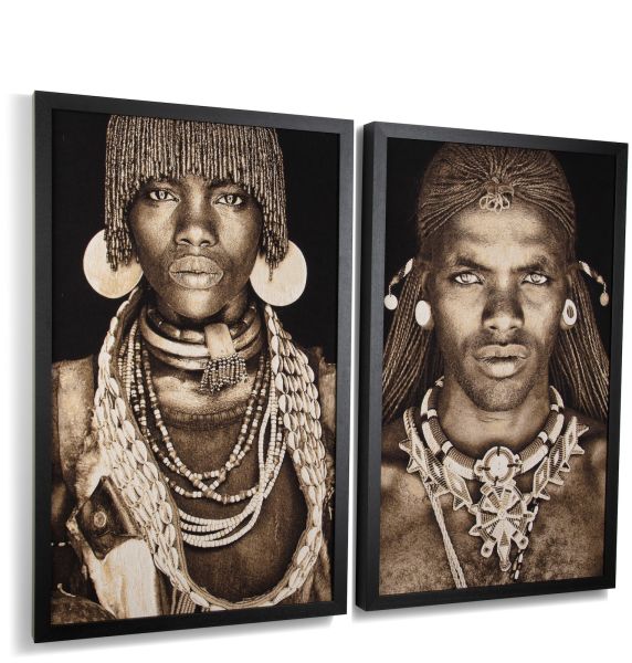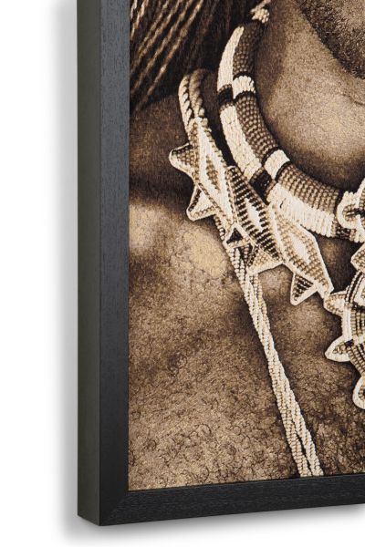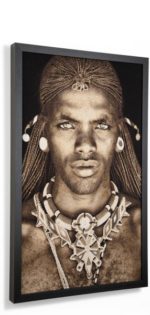 Ontdek de betovering van het Samburu Warrior schilderij uit de exclusieve wanddecoratie serie van COCOmaison! Dit schilderij van Mario Gerth komt uit de Gobelins serie. Met zijn imposante afmetingen van 125 x 75 cm is dit luxe kunstwerk een absolute eyecatcher in elk interieur. Het geweven doek geeft diepte aan het schilderij. De dikke houten lijst maakt het geheel helemaal af en hierdoor komt het kunstwerk echt tot leven. Dit schilderij past perfect in een industriële stijl, maar is ook mooi te combineren met andere stijlen. Breng wat verfijning in huis en laat dit meesterwerk je ruimte transformeren. Dit schilderij is op zichzelf al prachtig, maar laat zicht ook perfect combineren met het Hamar Woman schilderij uit dezelfde serie.