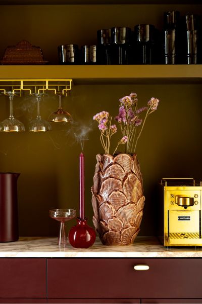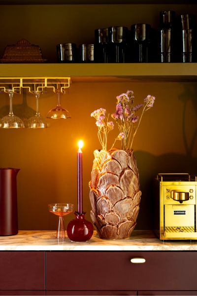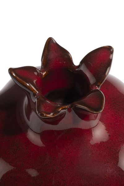 De Pomegranate kandelaar van COCOmaion is een prachtige blikvanger met een speels design. Deze keramieken kandelaar is 12 cm hoog en heeft de vorm van een granaatappel. De afwerking is van een rijke bordeauxrode glazuur, die luxe uitstraalt. Deze speelse kandelaar geeft een warme touch aan elke ruimte en is perfect om je kaarsen op een leuke manier te presenteren.